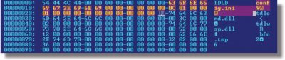 На рисунке 8 видны три файла, записанные на диск при инсталляции вируса (config.ini, tdlcmd.dll и tdlwsp.dll), а также временный bfn.tmp, загруженный из сети. Все секторы раздела зашифрованы при помощи алгоритма RC4. Этот же алгоритм используется и другими компонентами, не имеющими непосредственного отношения к работе виртуальной файловой системы. Так, например, упомянутый выше файл дополнительно зашифрован при помощи идентификатора бота, который хранится в config.ini и после расшифровки представляет собой набор команд для руткита (Рисунок 9).