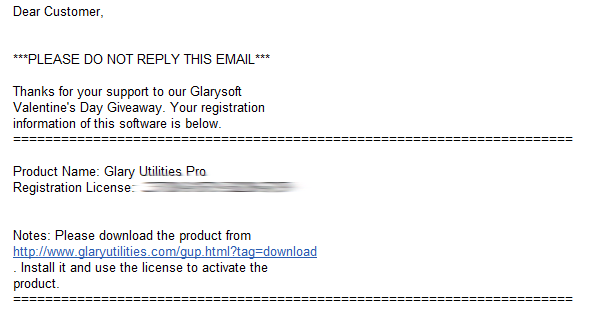 2. Сразу же, проверяем почту, открываем сообщение от Glarysoft и видим наш лицензионный ключ: