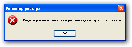 - Редактирование реестра запрещено администратором системы;
