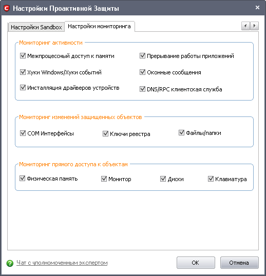 - Настройки Проактивной Защиты — В этом разделе вы можете изменить различные настройки и заставить Проактивную Защиту работать согласно специфическим защитным требованиям компьютера.