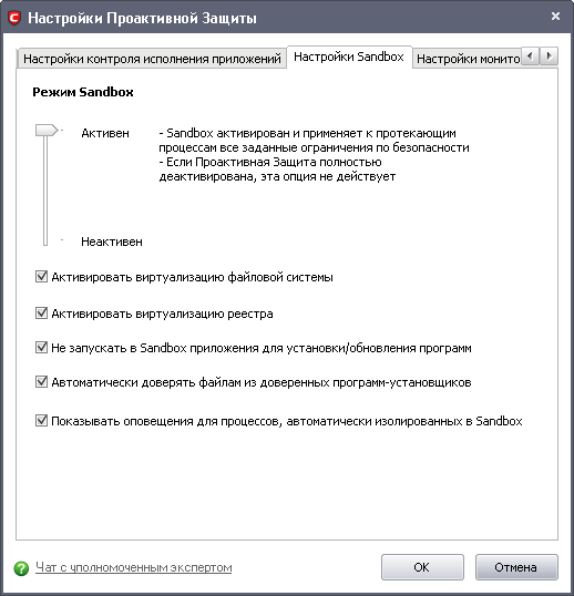 - Позволяет запускать подозрительные исполняемые файлы в изолированной среде Sandbox.