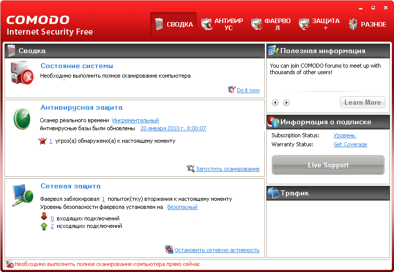 автор: Administrator | 19 января 2010, 18:57 | Просмотров: 69917теги: Статьи, обзор, COMODO, Internet Security, Безопасность, firewall, антивирус, Sandbox, защита