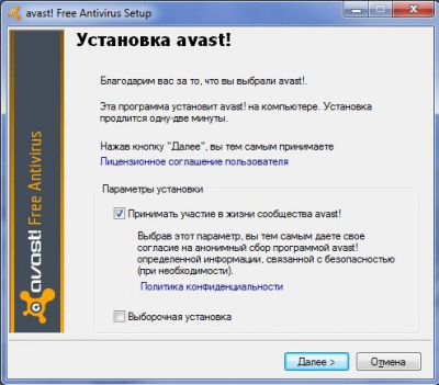 Рассмотрим Avast! 5 Free Antivirus подробнее. Итак запускаем установщик продукта. В стартовом окне установщика нам предлагается выбор языка интерфейса антивируса.